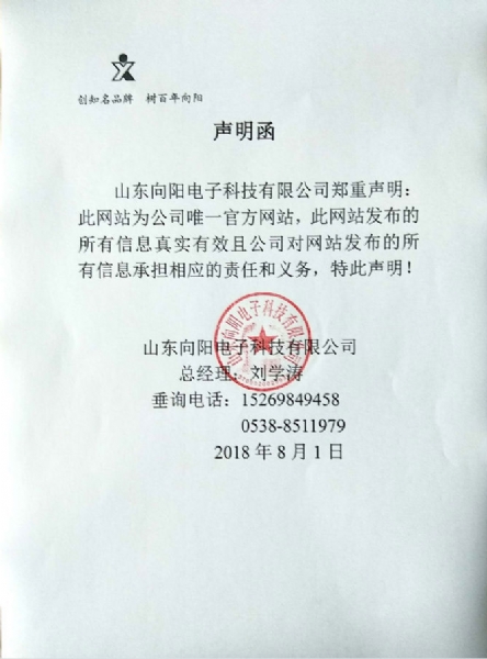 山東向陽電子科技有限公司企業(yè)公告如下: